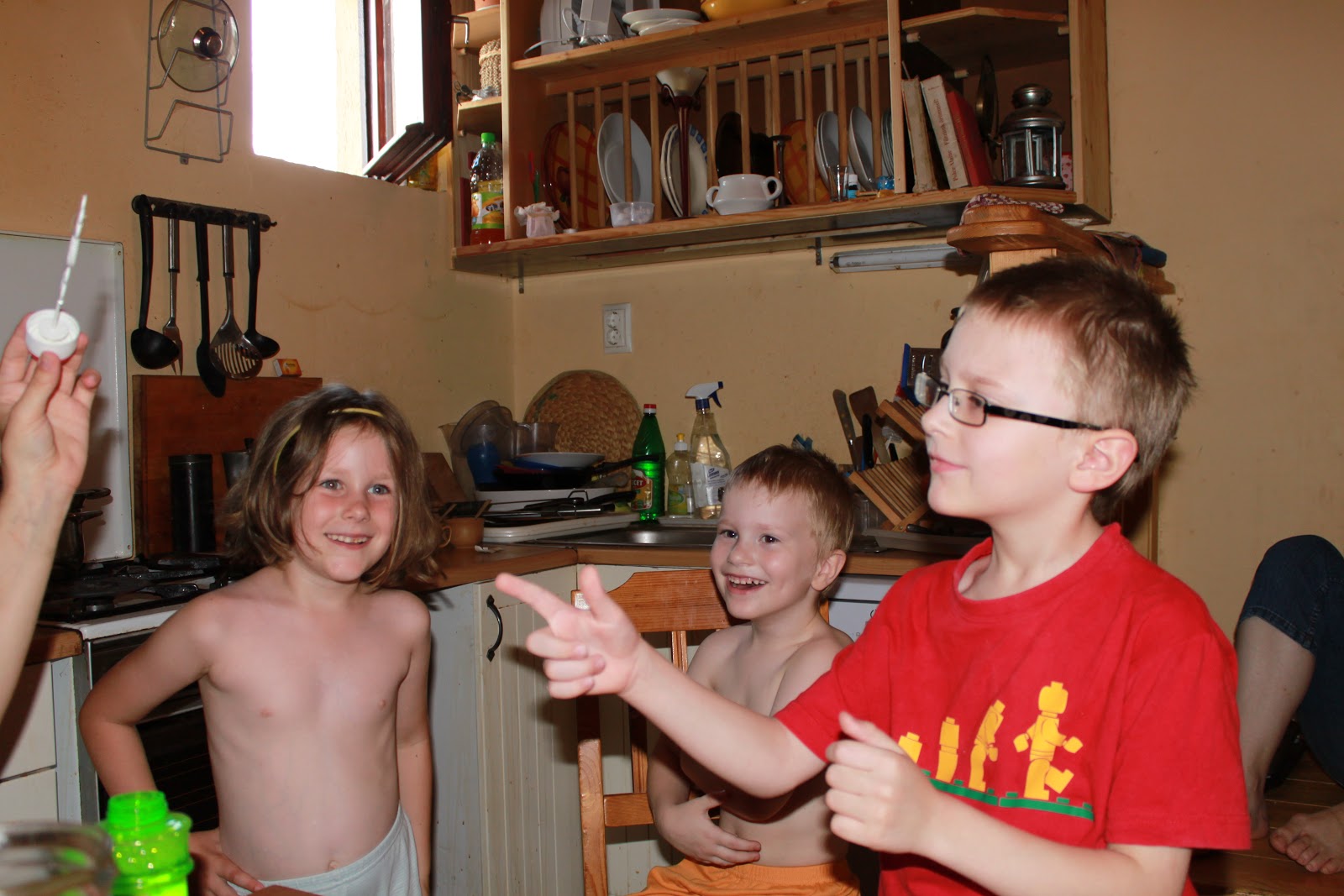 Ma meg vendégeskedés volt házi hamburgerrel, bubifújással és egyéb jó dolgokkal. Ráadásul Peti hajlandó lent aludni matracon és nem fent a 37 fokos emeleten. Már csak a lámpagyújtogatásról kéne leszoktatni. Ide teszek pár képet, azok mellé azt hiszem nem is kell a szöveg. És holnap Ember is hazajön. :)